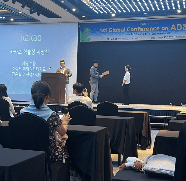 김은실 교수님과 조이서 박사님이 카카오 학술상 해외 부문 수상하셨고, Gabrielle Gunawan, 김세영 연구원이 논문을 발표했습니다.